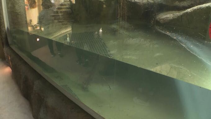 水深2メートルまで水を貯めることができ、ジャガーが水に潜って狩りをする様子をガラス越しに観察できます。