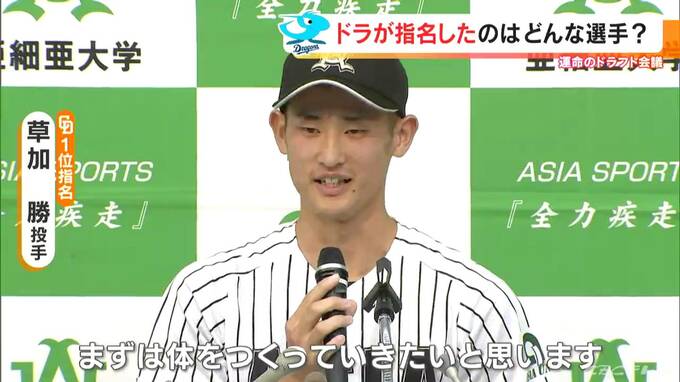 2度目の1位指名で、亜細亜大学の草加勝(くさか しょう)投手を指名。しかし…またしても競合に。