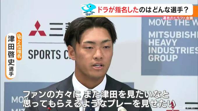 そして、ドラゴンズは2位に、三菱重工Eastの津田啓史(つだ けいし)選手を指名。高い守備力と強肩を誇る走攻守そろった内野手です。