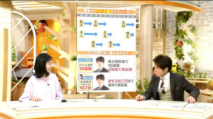 これをスケジュールで見ていきますと、当然この竜王戦は取らないといけない。そして、来年、王将戦、棋王戦、これらのタイトルをしっかりとった頃に、この167日を超える新記録が生まれるのではないかということで、とにかく大変です。