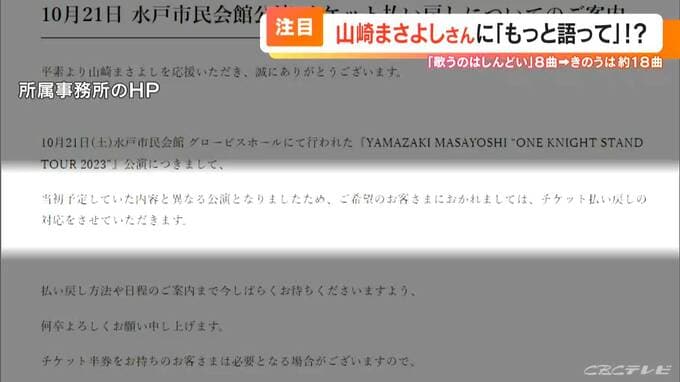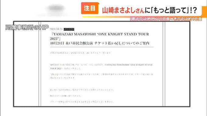 騒動を受け10月31日、山崎さんの所属事務所はホームページでお詫びし、希望する人にはチケット代の払い戻しを行うことを発表しました。