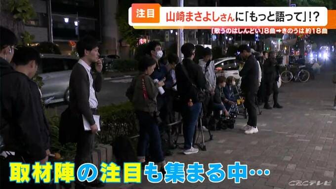 「名古屋市中区に来ています。騒動後、初めての山崎まさよしさんのライブということで多くのマスコミが集まっています」