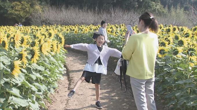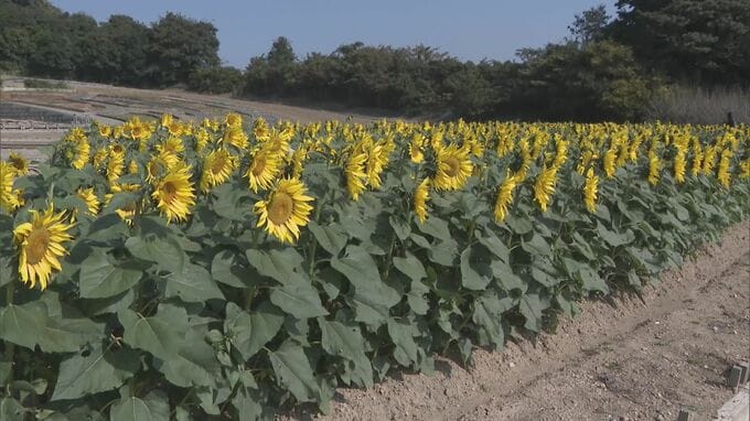 入園無料、駐車場無料のこの農業公園では、秋の涼しくなる時期にもきれいな花を楽しんでもらいたいと、この時期耕作が行われていない畑を利用し、およそ2500本のヒマワリを栽培。