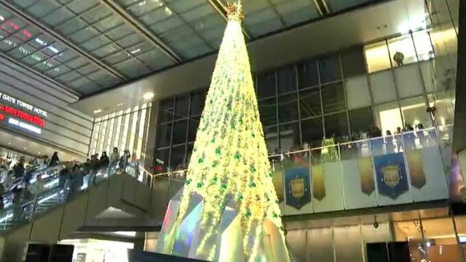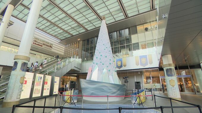 一方、ゲートタワー1階のイベントスペースでは、例年11月上旬に電球2万球で飾られた「クリスタルツリー」が点灯されます。ことしは8日の午後5時からで、すでに午前中から写真を撮る人も。