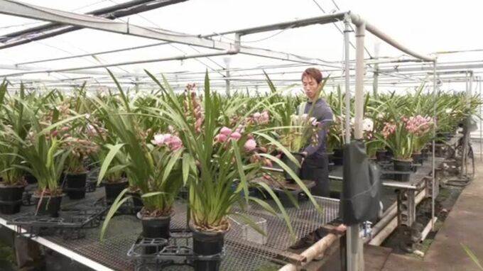 冬の花として人気のシンビジウムの出荷が、愛知県豊田市で最盛期を迎えています。