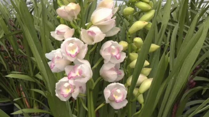 ことしは夏の気温が高く、「花とび」と呼ばれるつぼみの落下もありましたが、十分に管理したため、例年通り質の高いシンビジウムに育ったということです。