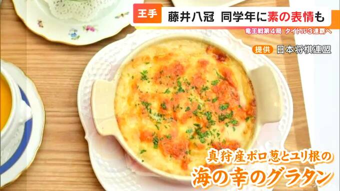 10日の藤井八冠の勝負めしは、「真狩(まっかり)産ポロ葱とユリ根の海の幸のグラタン」。