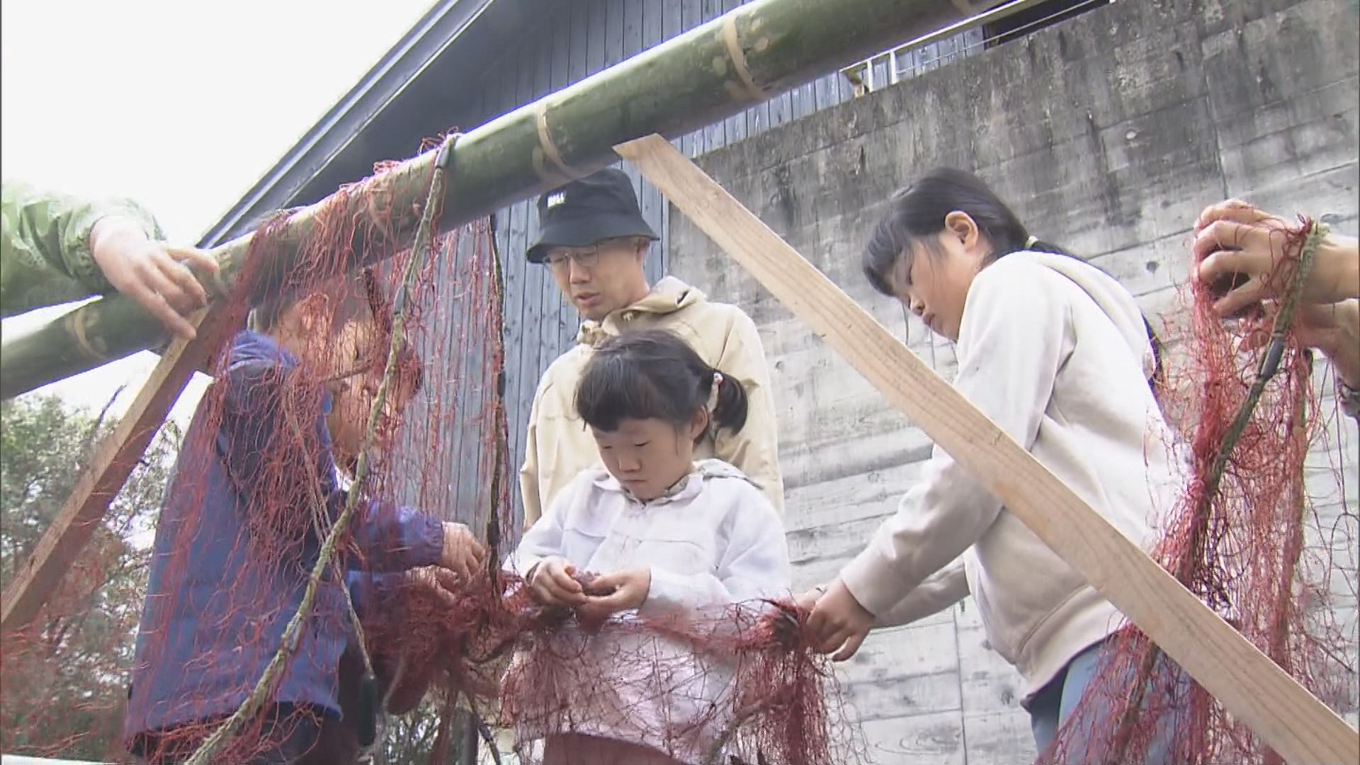 鳥羽市の海の博物館で開かれた体験学習には家族連れなど17人が参加しました。刺し網漁は海底に仕掛けた網に獲物を絡ませて獲る伊勢エビにも使われる漁獲方法で、体験学習では前日に海に仕掛けておいた網を引き揚げ掛かった生き物を網カギを使って外していきました。