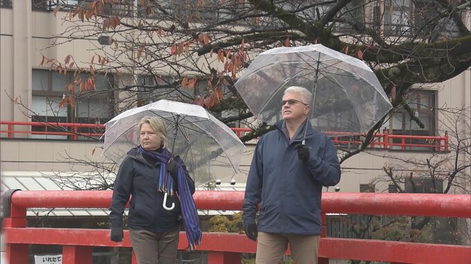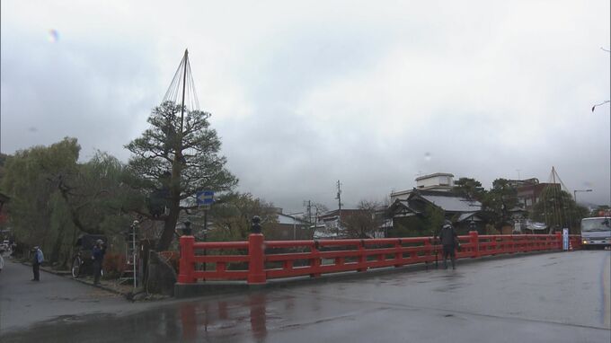 「雪つり」は、中橋周辺や高山陣屋前広場など29か所で行われ、街路樹の冬支度に観光客たちは足を止めて風情を楽しんでいました。