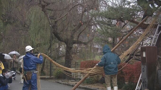 「雪つり」は冬の間、雪の重みで松の枝が折れないよう保護するため、毎年この時期に行われています。