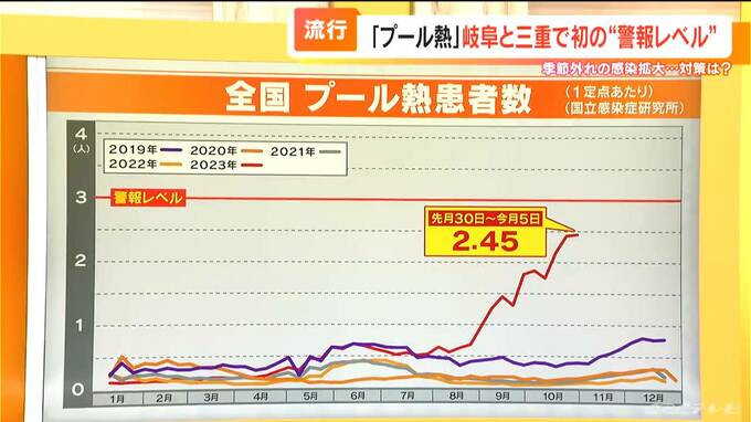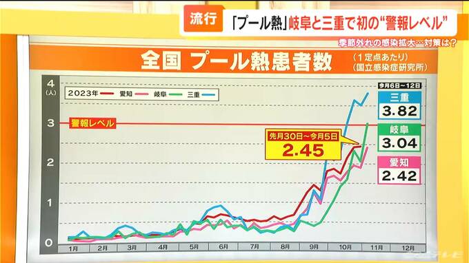 そして東海3県の患者数を見てみますと、11月12日までの1週間の数字なんですが、愛知県は「2.42人」、岐阜県は「3.04人」、三重県は「3.82人」となっています。