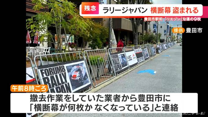 豊田市駅前は競技区間から、拠点のある豊田スタジアムまでラリーカーが自走で移動する「リエゾン」と呼ばれるルート上で、ラリー開催中だった19日夕方には、横断幕に異常はなかったということです。