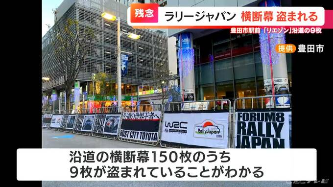 豊田市によりますと、20日午前8時ごろ、撤去作業をしていた業者から「横断幕が何枚かなくなっている」と市に連絡があり、担当者が確認したところ、沿道の横断幕150枚のうち9枚が盗まれているのがわかりました。