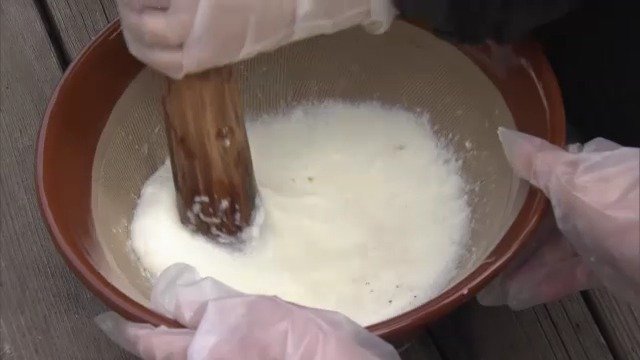 収穫を終えると子どもたちは、すり鉢でイモをすりおろし、伊勢うどんにかけて食べました。