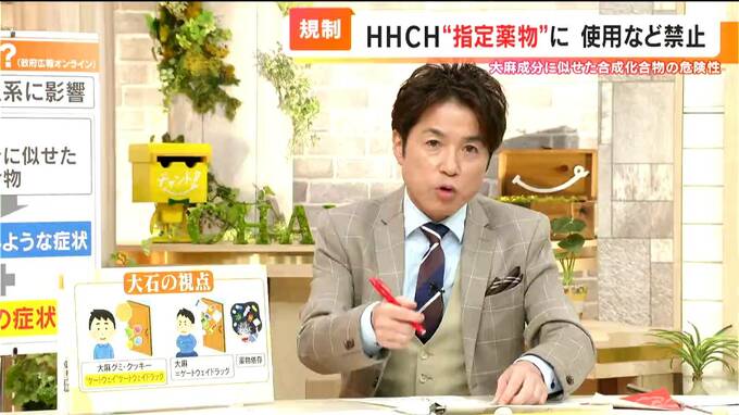 大麻グミの成分=HHCHが指定薬物に 大麻成分に似せた“合成化合物”の危険性 未知の症状が現れる? 2023年11月22日(水) 18:58 国内 (柳沢彩美アナウンサー)HHCHを含むクッキーやグミなどが、取材した店では販売停止になったということですが、HHCHというのは一体どんなものなのか確認しておきます。(斉藤初音アナウンサー)まず大麻に含まれる…