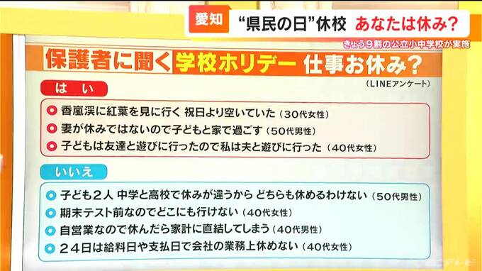 保護者の方もね、全員が全員休めるわけではない。企業によって違う、職種によって違う、個人の事情によって違うわけですよね。そこで、まずは愛知県の大企業に聞いてみました。