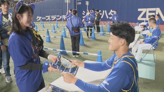 また、グラウンド上で選手らと触れ合える「交流イベント」が4年ぶりに復活し、ファンたちは選手と一緒に写真撮影をするなどして楽しんでいました。