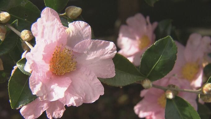 市の天然記念物「サザンカ」が見頃 直径10センチほどのピンクの花が咲き誇る 2023年11月27日(月) 12:04 国内 三重県松阪市で、市の天然記念物の「サザンカ」が見頃を迎えています。松阪市飯南町の茶畑には樹齢150年、高さ10メートルのサザンカの大木がそびえています。花は11月中旬ごろから開き、今は直径10センチほどのピ…