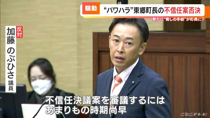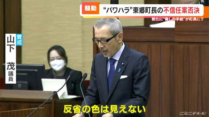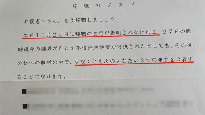 これはCBCが関係者から入手した手紙です。町長に11月24日、届けられたもので「辞職を表明しなければ2つの発言を公表する」という脅しともとれる内容が書かれていました。差出人にはアンケート調査を実施した職員の名前もありました。これを受けて井俣町長は。