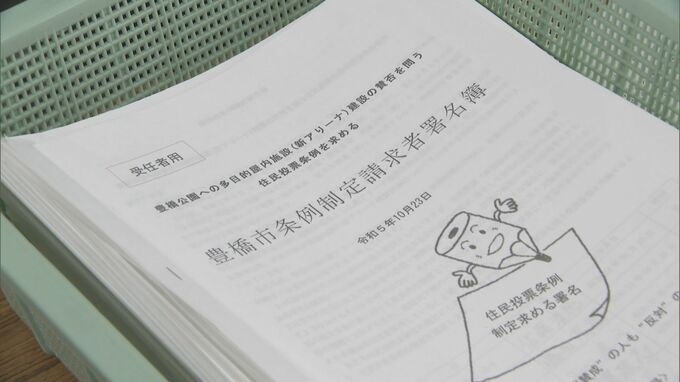 署名活動は、豊橋市が進める「新アリーナ」建設計画に反対する市民団体が、計画の是非を問う住民投票を求めて、10月24日から11月23日まで行っていたもの。