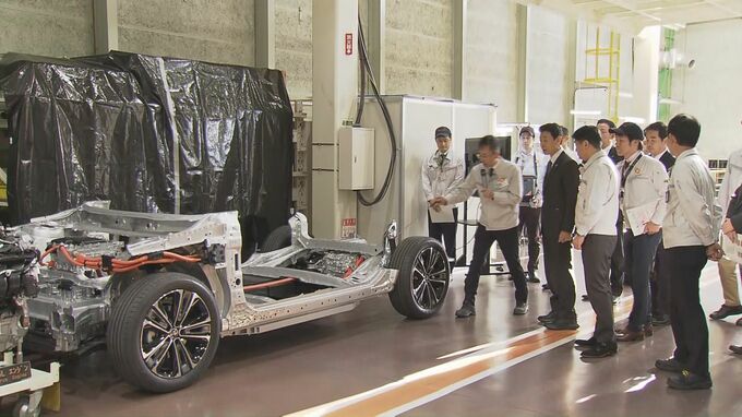 西村康稔経済産業大臣が愛知県みよし市のトヨタ自動車の工場などを訪れ、次世代のEV開発に向けた取り組みを視察しました。