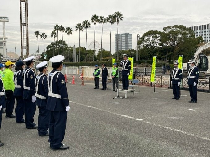 式典では、港警察署の稲垣正直署長がドライバーらに対して「よそ見やスマートフォンを触りながらの運転はせず、安全運転を心がけてほしい」と呼びかけました。