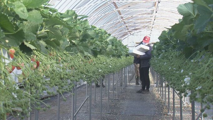 クリスマスを前に需要が増すことから農園では今、従業員総出でイチゴを摘み取る作業に大忙しです。
