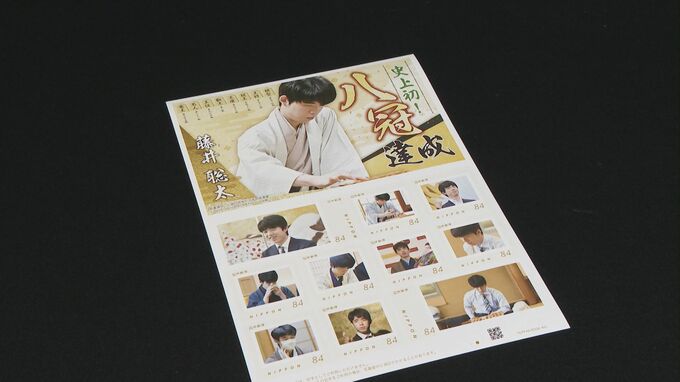 愛知県・瀬戸市出身の藤井聡太八冠の記念切手が、11日から東海4県の郵便局で販売されています。