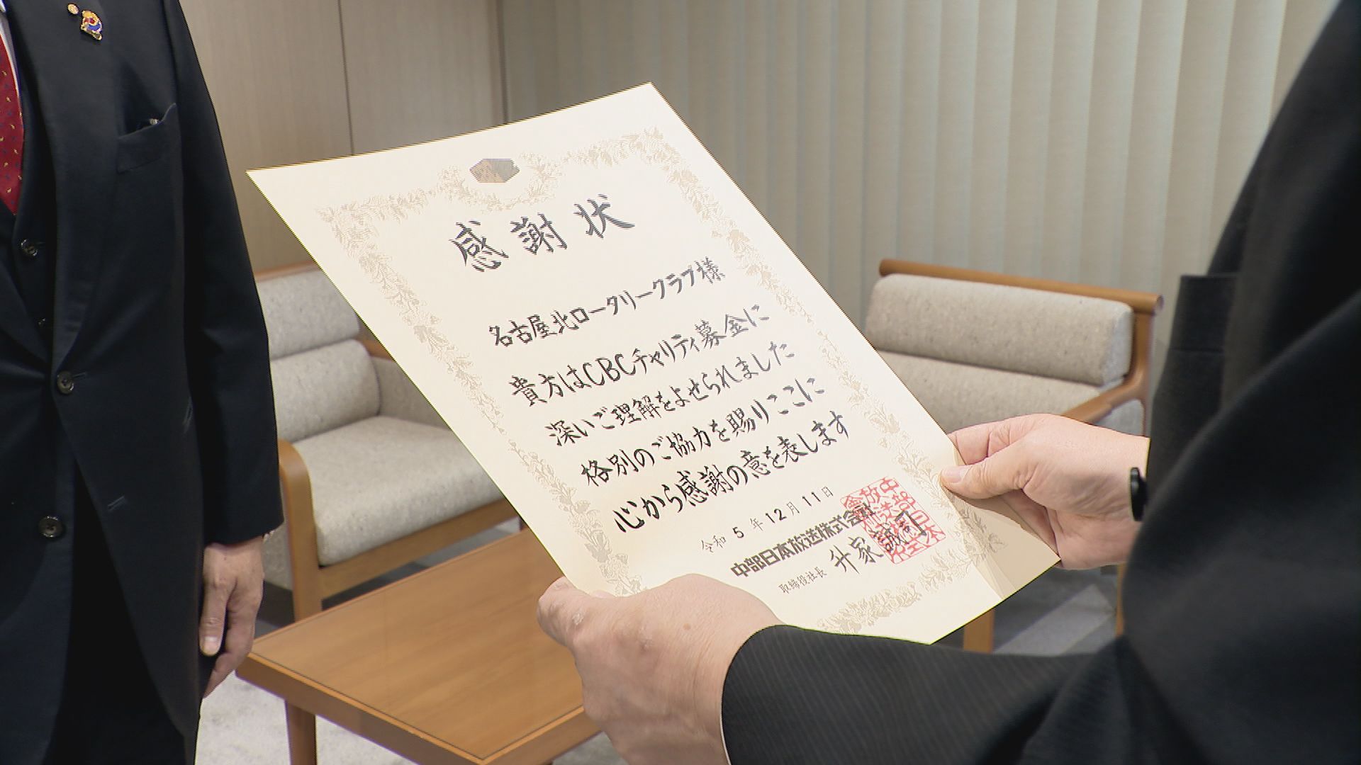 11日は名古屋北ロータリークラブの高柳充広会長が、募金の目録を授与し、CBCからは感謝状が贈られました。