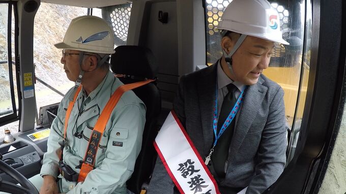 「一日町長」としての視察ということで、特別にダンプに乗り込んだり、一般の見学ツアーでは見られない現場にも。