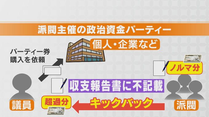 「元々のノルマ分を超えてパーティー券をさばいた議員に対しては、いわゆる超過分を派閥が、ある意味『頑張ったご褒美』というわけではないが、キックバックする。キックバック自体は、きちんと記載がしてあれば問題はない」