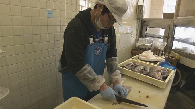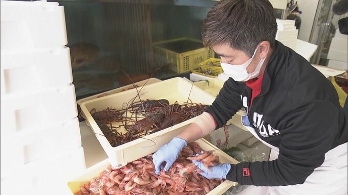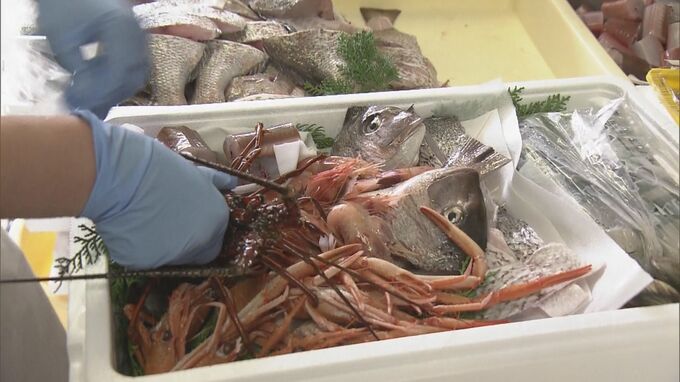 従業員たちは連日、マダイを中心にその日の朝に水揚げされた魚介類の中から厳選した海の幸を箱に詰める作業に追われています。