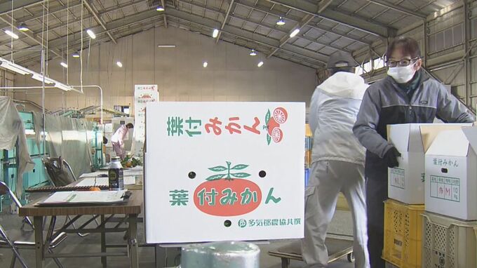 三重県多気町(たきちょう)で、鏡餅に飾る「葉付きミカン」の出荷が始まりました。