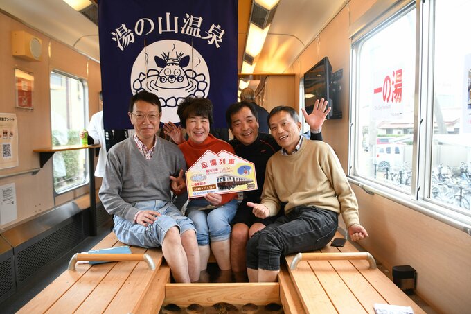 観光列車「つどい」の車内で足湯が体験できる「足湯列車」を4年ぶりに運行。
