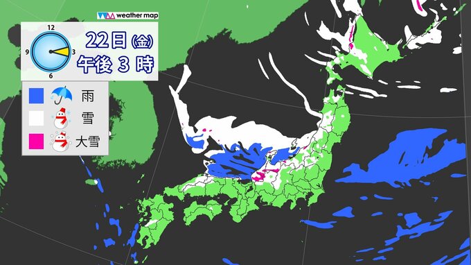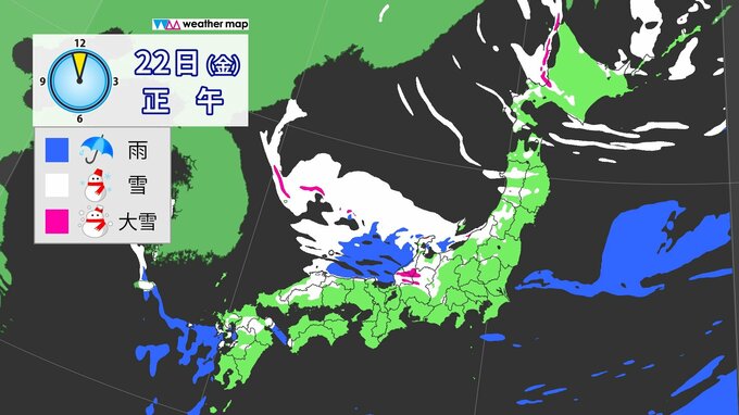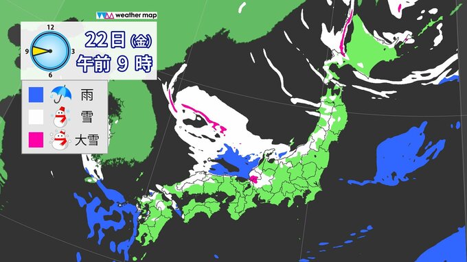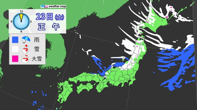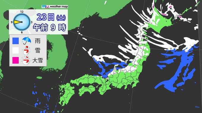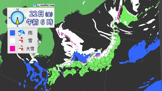 また、23日(土)にかけては、北日本から西日本の日本海側を中心に警報級の大雪になる可能性があるでしょう。
