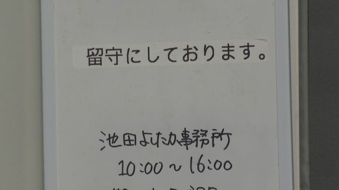 池田議員の名古屋市内の事務所前には、連日多くの報道陣が詰めかけていますが、未だ公の場に姿を見せていません…一体どこに?
