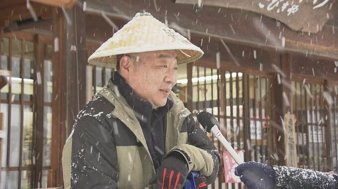 「午前9時半過ぎです。岐阜県の白川郷には昨夜から降った雪が、30センチ以上積もっています。外国人観光客の姿も見られます」