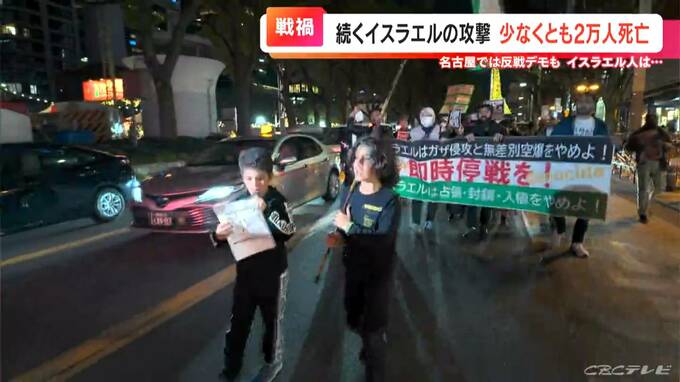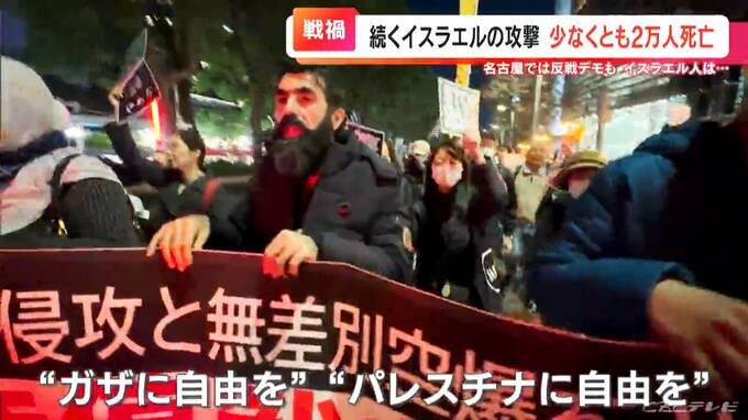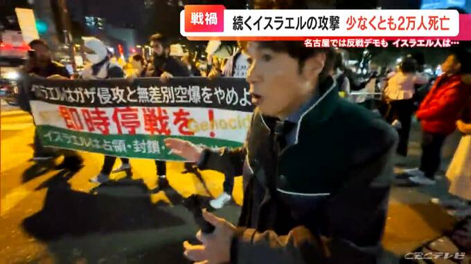 「この横断幕を手にした皆さんが、栄の街を練り歩きます。先頭にいるのはこの2人です。少年が『フリーフリーパレスティン、フリーフリーガザ』、“ガザに自由を”“ パレスチナに自由を”と声高らかに叫んでいます」