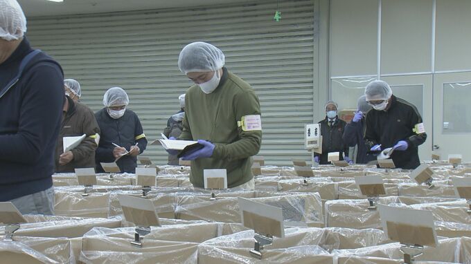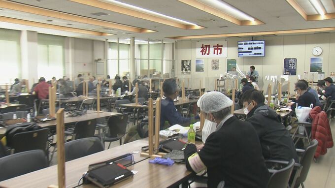 それでも、ことしは初市を遅らせたため去年の初市に比べて、約10倍の560万枚が出品されました。