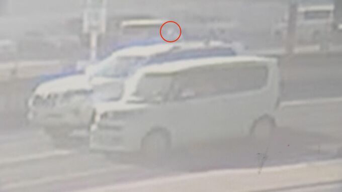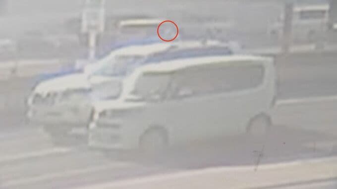 25日、愛知県安城市の交差点で上空から金属部品が落下し、信号待ちの軽乗用車を直撃しました。