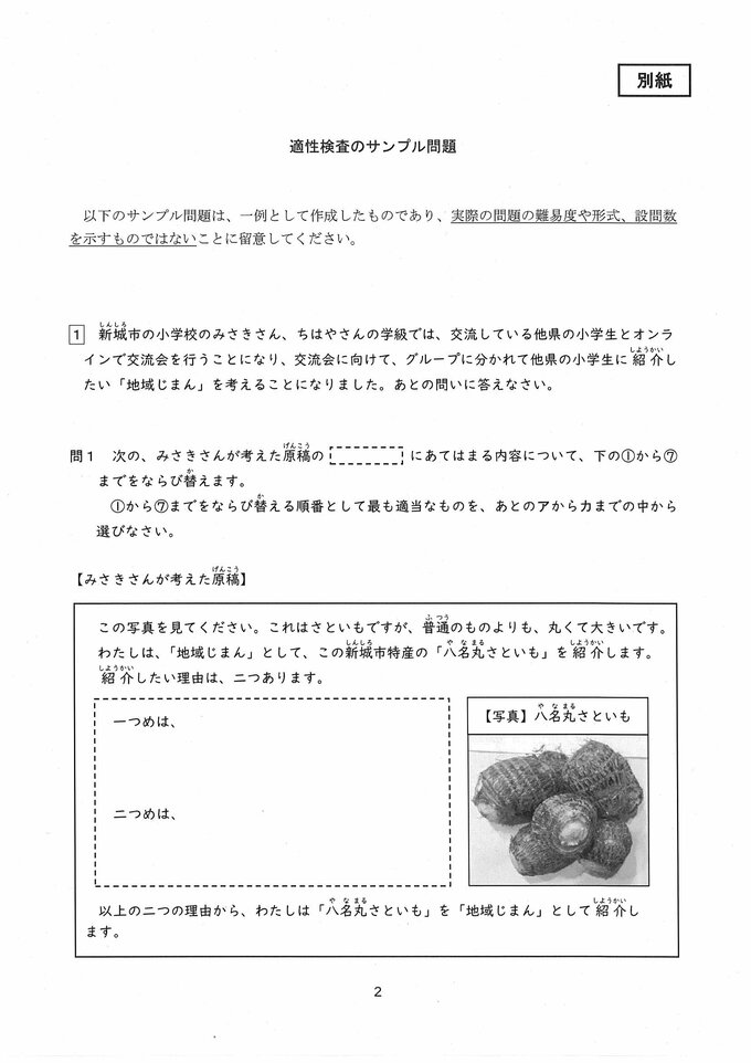 愛知県教育委員会は、県立中高一貫校附属中学校の入学者選抜で、中高一貫教育における探究的な学びに必要な資質・能力をはかるために実施する「適性検査」(全コース共通)のサンプル問題を発表しました。(サンプル問題は画像で)