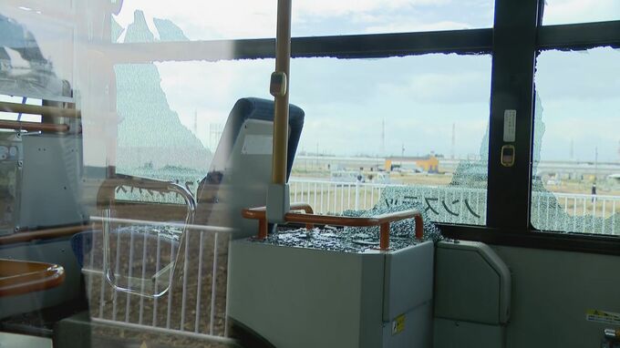 名古屋市港区の交差点で、トレーラーが運んでいた鉄骨とみられる積み荷が、市バス車体に“突き刺さる”事故がありました。市バスの窓ガラスなどが激しく割れていますが、けが人はいませんでした。