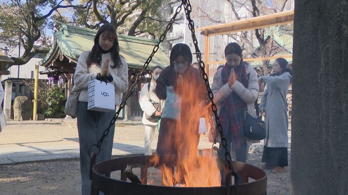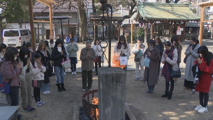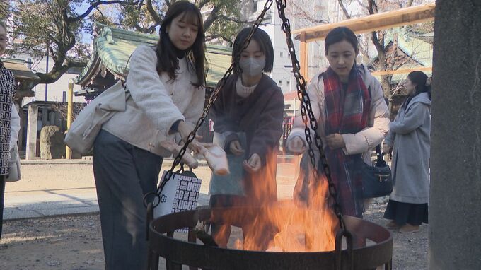 28日は千種区の高牟神社に小学4年生から主役級の団員まで約30人が集まり、団員たちはお祓いを受けた後、履きつぶしたトゥシューズを火の中に投げ入れ、これまでの感謝と今後の上達への願いを込めて手を合わせていました。