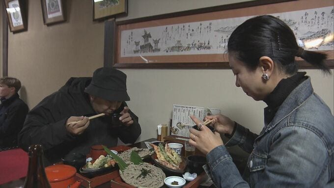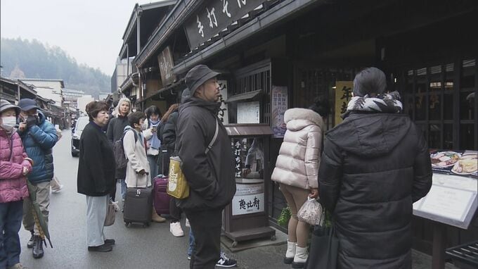 高山市で明治時代から続く老舗のそば店「恵比寿」は年越しそばを求めるたくさんの観光客らで開店前から賑わいました。年越しそばを食べるのは江戸時代から続く風習で、そばは細く長く伸びることから、長生きできるようにと縁起をかついだものといわれています。訪れた人はことし1年に感謝しながらそばを味わいました。