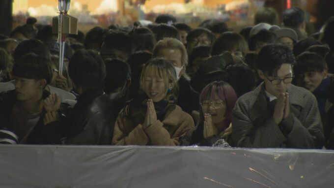新年を迎えた熱田神宮では初詣の参拝客が年越しの瞬間、本殿に向かって一斉にさい銭を投げ入れました。