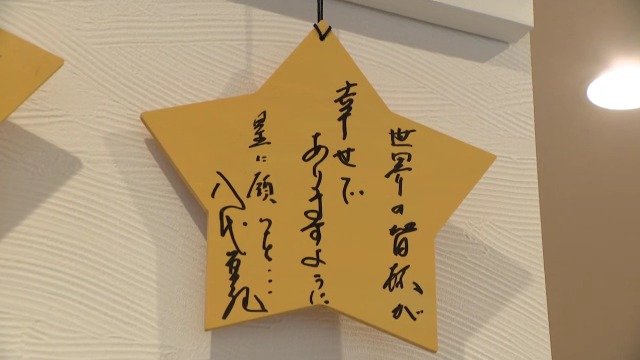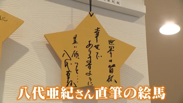 八代亜紀さん直筆の絵馬には「世界の皆様が幸せでありますように。星に願いを…」と、平和への思いが込められていました。