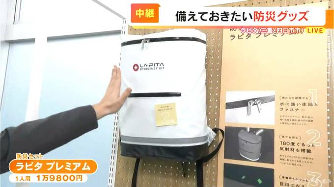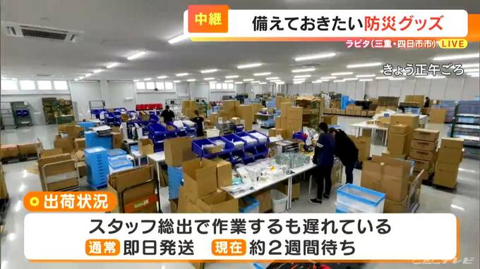 三重・四日市市にある防災グッズメーカー「ラピタ」では、通常の10倍以上の発注が来ているということで、防災グッズに注目が集まっているようです。