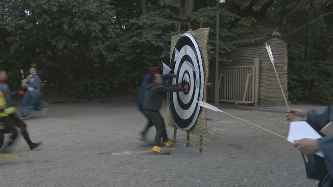 「最後の矢が放たれました。参拝客が一斉に駆け出します」
