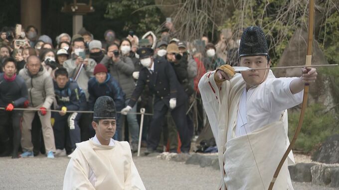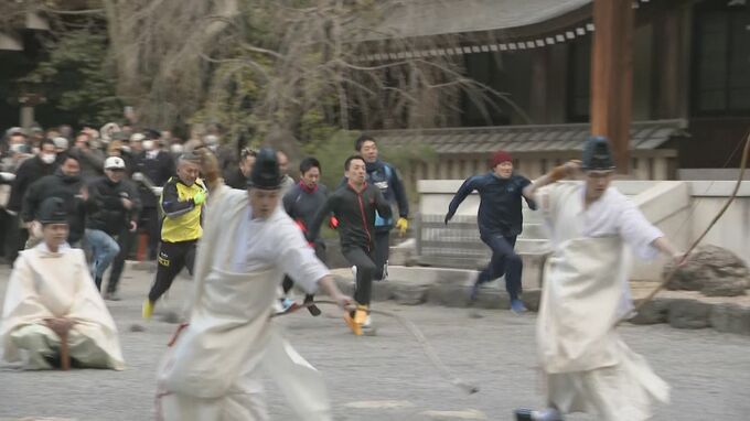15日午後2時過ぎ、名古屋市の熱田神宮で豊作と厄よけを祈願して矢を射る歩射神事(ほしゃしんじ)が行われ、魔よけのお守りを巡る参拝者同志の激しい争いが繰り広げられました。