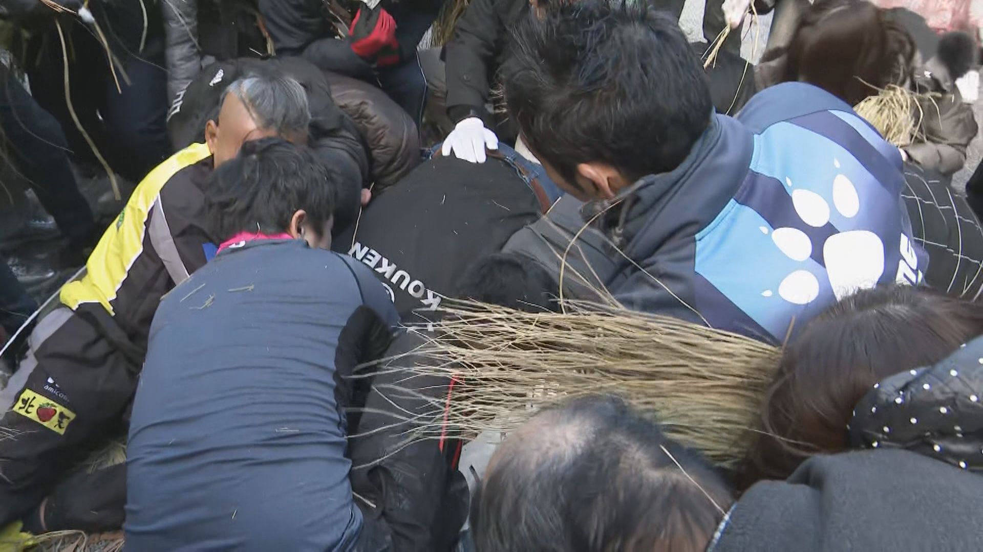15日午後2時過ぎ、名古屋市の熱田神宮で豊作と厄よけを祈願して矢を射る歩射神事(ほしゃしんじ)が行われ、魔よけのお守りを巡る参拝者同志の激しい争いが繰り広げられました。